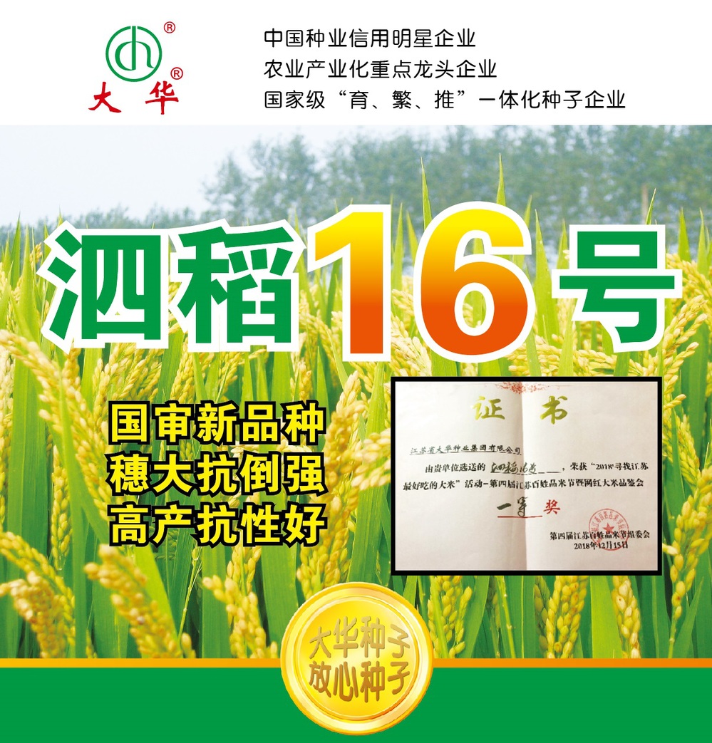 • 大华种业现阶段主营常规稻麦种子,同时大力发展杂交玉米、杂交水稻种子经营。公司现有“大华牌”水稻种子、小麦种子、大麦种子3个“江苏省名牌产品”,2012年“大华”商标被国家商标局认定为“中国驰名商标”。当前,公司在营各类农作物品种40多个,其中,常规水稻主推华粳5号、华粳9号、连粳13、扬农香28、泗稻16、大华香糯、连糯1号等高产优质品种;小麦主推华麦5号、华麦8号、华麦1028、镇麦168、镇麦10号、扬麦29、扬辐麦10号、郑麦1860等高产优质品种;玉米主推苏玉34、大华1146、苏玉糯602等品种。