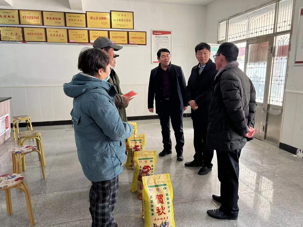 在新春佳節即將來臨之際,1月21日,蘇墾農發股份公司黨委副書記、工會主席倪志愿赴省文明單位結對幫扶單位灌云縣同興鎮塘圩村走訪慰問困難戶??h委辦副主任劉錦虎,鎮黨委委員、武裝部長馬士權,省委駐灌云縣幫促工作隊隊員陪同慰問。