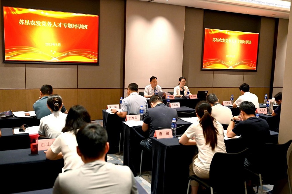 為深入學習貫徹習近平新時代中國特色社會主義思想和黨的二十大精神,提升公司黨務工作者政治能力和業務水平,提高公司黨建工作質量,加快推進黨建工作與生產經營深度融合,8月2日至4日,蘇墾農發在徐州舉辦為期3天的黨務人才專題培訓班。公司黨委副書記、工會主席出席開班式并講話,公司總部、子公司、蘇墾農科院黨務工作者35人參加培訓。