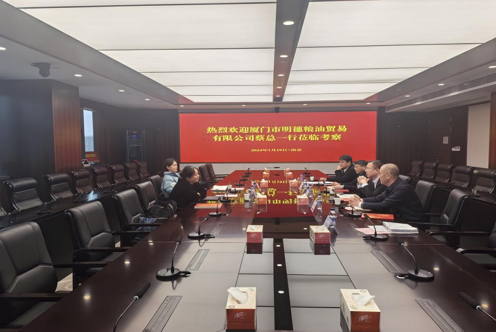 1月19日,廈門市明穗糧油貿(mào)易有限公司副總經(jīng)理、財(cái)務(wù)總監(jiān)蔡川珊一行到蘇墾農(nóng)發(fā)考察交流。集團(tuán)黨委委員、蘇墾農(nóng)發(fā)副總裁(牽頭經(jīng)營(yíng)層工作)丁濤出席座談會(huì)。